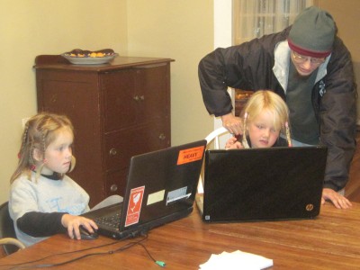 We read stories, color halloween pictures and build cities. We enjoy the library for several hours. It gives Bill a chance to catch up on email.