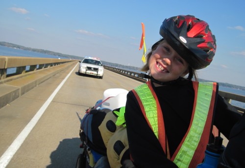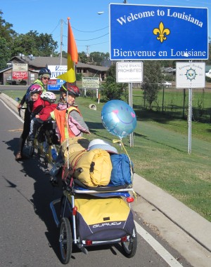 Under police protection we pedal the last five miles into town to the Hampton Inn at the Mississippi River. We can see the bridge which will take us into Louisiana on Sunday. We can see the mighty river. We receive a hearty welcome and for the kids much more: