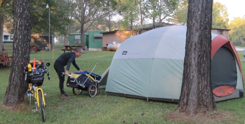 We get to put our tent up next to the police department/fire department, under a pecan tree. Inside the building we are allowed to use the bath room facilities. We have leftover carrots, satsumas, cheese and crackers for supper and call it a day.