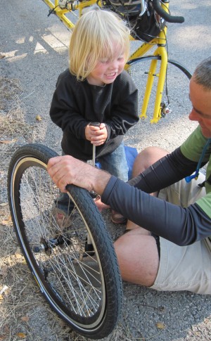 The trail is over 40 miles long and we are riding it all the way. We stop to rest, eat, play and snack.