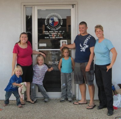 Town is just up ahead. We can see the tall courthouse above all else. We already decided on a motel today. But first we are looking for a place to have lunch. We ride around the courthouse and find a sandwich shop on the corner. One of the employees saw us riding a little while ago and traced us down just as we pulled to a stop. They are inviting us for lunch. Great!