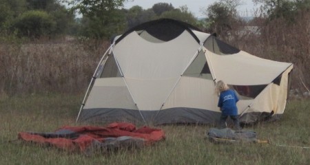 Quite a day. We find we can camp behind the truck stop. Bill sets up camp. Amarins plays cards with the girls in the cafe. Before it gets dark we are all in the tent. It is going to be a cold night tonight, we dress warm and snuggle up deep in our sleeping bags. Bill reads a part of Undaunted Courage before we call it a day.