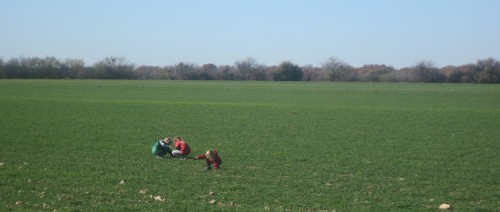 The girls study the insulation value of grass... Well, they hide and realize it is much warmer in the grass then out in the open.