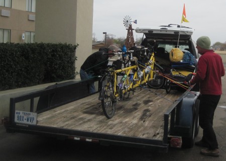It is decision time. We decide to call for help. This is the first time in this four month journey. We will transport our bicycle, trailer and our selves to Slaton. Our journey will include a 23 mile gap. It is what it is. And it is good.