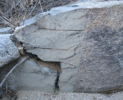An abandoned slab provides a good camping spot at the foot of the Pinto Mountains.