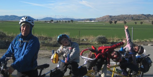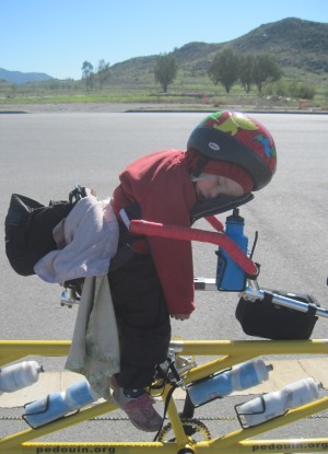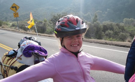 January 24, 2010 Mount San Jacinto. 10,800+ feet tall. You're looking at the 10,000 foot face of the mountain, from where we stand in the valley. Saving the day are Joe and Ed. Thank you very much! It is so green here. The last time we saw this much green was in eastern Texas. Amarins just has to test the grass. The interstate is off limits. Our route takes us across the Morongo Indian Reservation. Or is it?.. The moon is watching over us. Into the valley. Lush and green. What a ride today. We've had quite some adventures. The sun is setting. The Pacific Ocean lies just behind these mountains. Cheyenne is enjoying her cake, while Chris and McKay pass out the cake for all the guests. Thank you for your generosity. May your journey be an inspiration too.