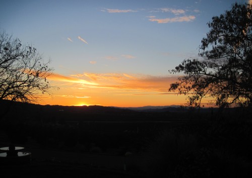 Sunrise over the Granite mountains. We traveled across them yesterday.