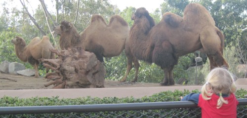 January 29, 2010    Enjoying the takin from China. It is very special to see a real life panda. The panda keeps on eating and eating. Definitely worth going to the zoo for. The mammoth is squishing Jasmine and Robin! Observing the Dromedary Camel (has two humps). The Bactrian Camel has only one hump.