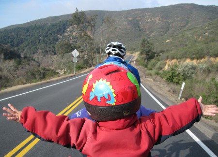 January 27, 2010 San Diego county line. We can almost smell the Pacific Ocean. The town of Rainbow. We came from across the valley. Still climbing. And up some more. This was a one hour hill with a gorgeous view over the valley we just came through. While Bill helps fix the car, the girls have time for make-up. Crossing interstate 15 once more. It's still a windy way to Escondido. Goofing off with Mr Mandaric.