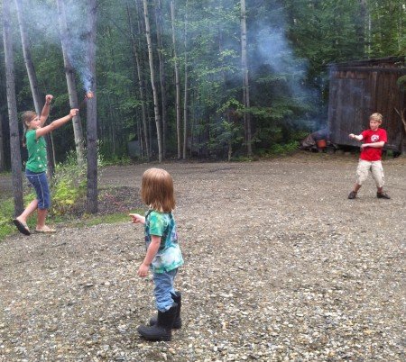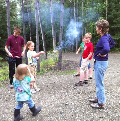 At the Anderson Bluegrass Festival. The girls swing the hoops round and round. Laurie and Martin joined us in Nenana, to spend one more day with us before we get together the next time.