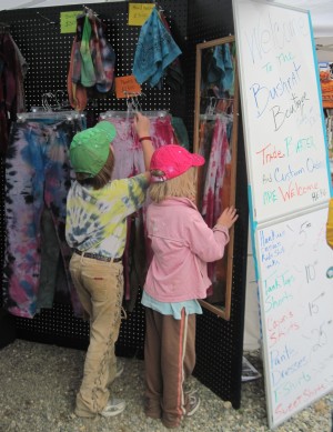 Cheyenne and Jasmine check out the tie dye wear at the Bushrat Boutique.