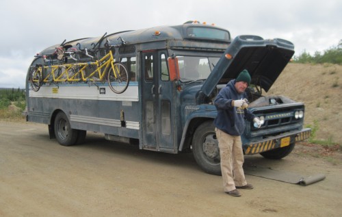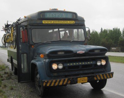 Home to us for almost a year, we're leaving Fairbanks behind us. It's July 31st of 2011. Exactly two years after leaving our home in Kentucky on our five person bicycle. Two years filled with a bicycle journey that stretched 6,439 miles-from Ocean to Ocean and some more-, a winter in Fairbanks, writing a book about our bicycle journey and having it printed and for sale, finding and fixing up a 1960 Chevrolet Viking bus, and much much more. We live a full life.