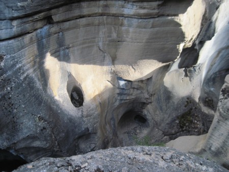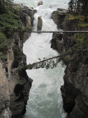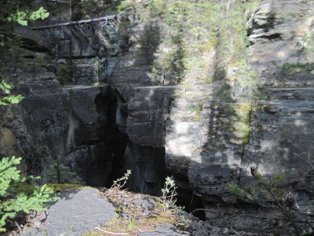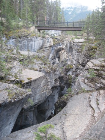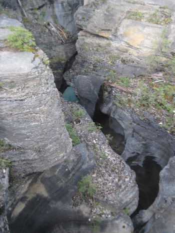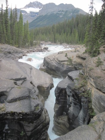 At Mistaya Canyon. "The river has worn a deep, twisting gorge into the limestone bedrock," says the Milepost.