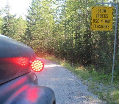 We pull off the road after crossing another one lane bridge, to let the traffic go by. To our surprise we hear a call from one of the vehicles: "Berea!" What are the chances to meet a neighbor of friends right here in the wilderness?