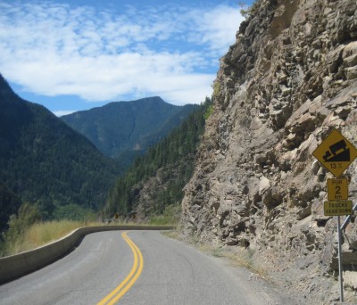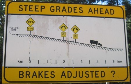 It's already a hairy road, winding its way along the canyon, a 10% downhill adds quite a bit of excitement.