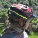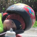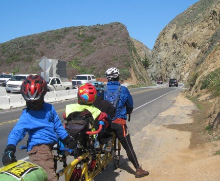 A little further is a pullout. We park the bike. Everybody off! We've gone 24 miles already and we can feel it.