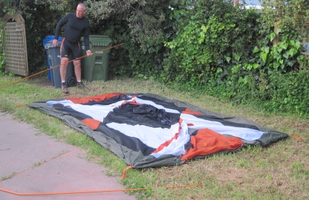 The tent is quite easy to set up. It has a mixture of our first and second tents. When it's set up, we don't feel this tent is an improvement over the first two. It is extremely tall, has 40% of mesh, no doorflies and two cutesy windows that decrease privacy. Further it's more square then rectangle, which doesn't improve the space in the tent. It'll do for now. Tomorrow we'll talk to Brian, he can probably help us find a tent that suits us better.