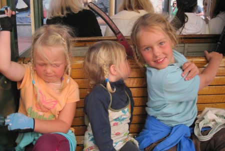 The tent is already packed up when it starts to rain. We quickly cover the kids with the tarp. What an excitement.