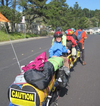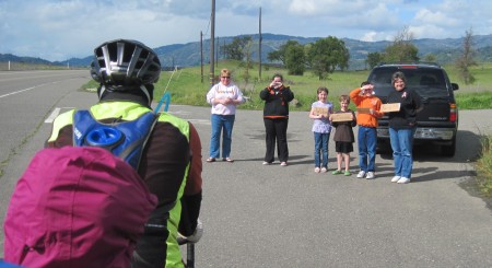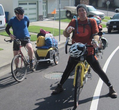 We're not leaving on our own. A group of riders from the Velo Club Monterey, as well as Jon and Melanie, with Noah and Hannah, are going to ride with us