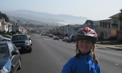 Once the last pictures are taken, we're off. The route takes us to the Monterey Bay, where we pick up a bicycle trail through the dunes. Little Hannah is the fastest of us all. Her legs keep spinning and spinning. What an energy. She zooms up the dunes until she's out of sight.