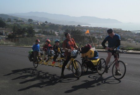 Taking a drink on top of the dunes, with Monterey in the background. Hannah has raced us all to the top. Hard for daddy Jon to catch up while pulling Noah in the trailer.
