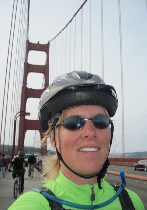 A speedy lady rider comes our way on San Andreas road. It's Kathleen, our host for tonight.