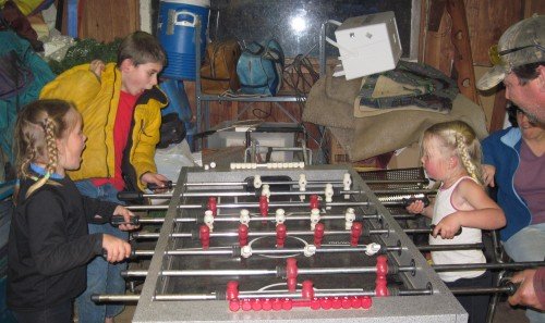 The girls are checking out the clubhouse. The truck horns are the best part of it all. After bringing them up to pressure with an aircompressor, they all get a chance to honk the horns. The sounds echo through the valley. Robin quickly covers her ears.