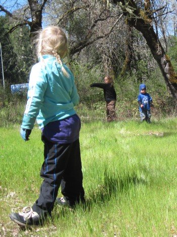 The ride takes us slowly up towards Laytonville. A wide spot along the road provides a good spot for a break. A concrete slap in a field of grass will be our picnic table. The tall grass will be the playground. Jasmine finds the tiniest little white flower in it. Cheyenne enjoys jumping over it. Robin is observing it all to figure out her way in it.