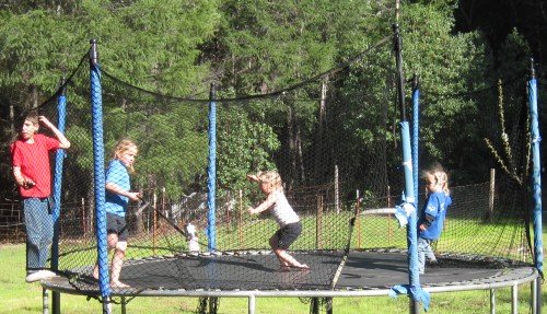 While we were setting up camp, the girls were swinging on the tree swing. Kathleen has been fixing supper.