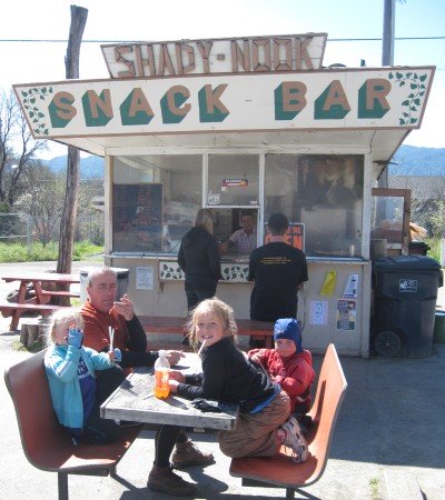 We're enjoying the sun to take a break at the Snack Bar in Laytonville. Thanks for the hospitality ladies!
