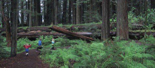 We are so happy to arrive at the entrance to the Montgomery Woods. Land ahoy! The fresh air does all of us well. After a quarter mile walk we arrive between the giants.