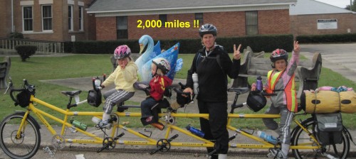 Every journey starts with a small step, in our situation a single stroke. We don't know how many strokes we've made so far, but we can guess it have been about 2 Million! Uphill it takes us a thousand strokes a mile. On the flat in high gear it takes us about 300. So an average of 650 strokes per mile times the 2,800 miles we've traveled, brings us to 1,820,000 strokes. Thus Two Million for short.