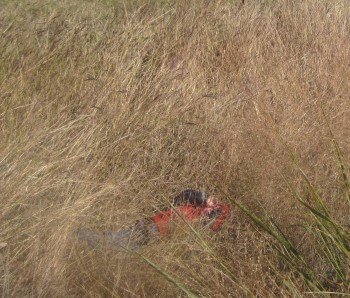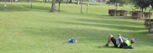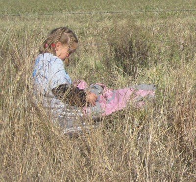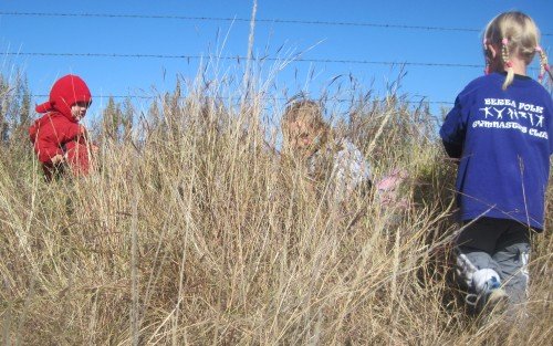 The girls study the insulation value of grass... Well, they hide and realize it is much warmer in the grass then out in the open.