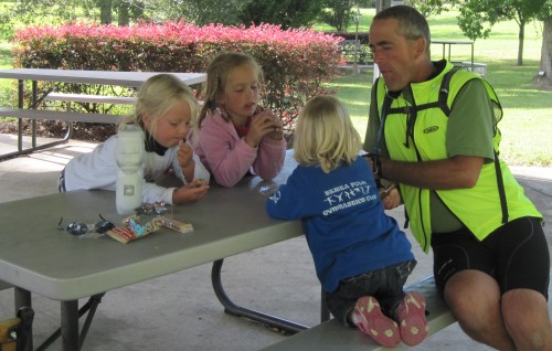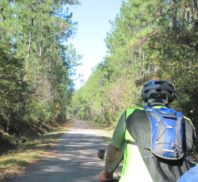 The trail is over 40 miles long and we are riding it all the way. We stop to rest, eat, play and snack.