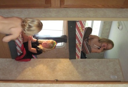 The girls jump with joy. Cheyenne immediately claims the top bed, Jasmine chooses the bottom bunk. Robin will have to sleep on the pull out. Spacious enough for her.