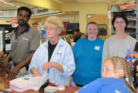 The Brookhaven press meets us here. Since Bill and Amarins are talking with customers and attendents of the Chevron, the reporter starts with the girls. The girls are handling it like professionals, answering every question asked.