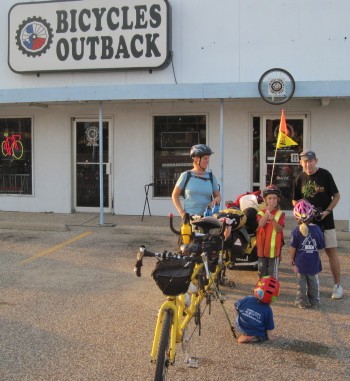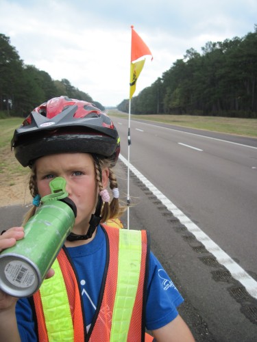 Under police protection we pedal the last five miles into town to the Hampton Inn at the Mississippi River. We can see the bridge which will take us into Louisiana on Sunday. We can see the mighty river. We receive a hearty welcome and for the kids much more: