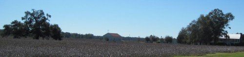 Same wind, same road, same hills. Still beautiful and majestic to look at. The hills flatten out a little bit. We see whiteness on the fields. It can't be snow. The girls recognize it. It is cotton.