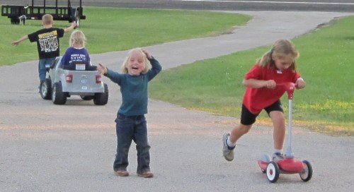 Bill and the girls go with Bob to his place and get to ride on the train and sit in the planes. When they come back they tell Amarins all about it. They're so excited. Thanks Bob! Quite an ending to this day.