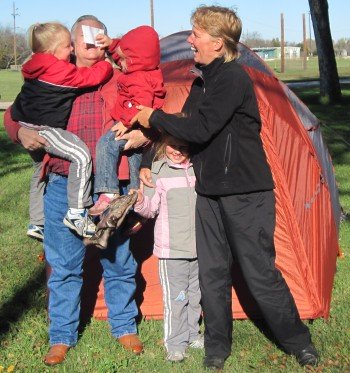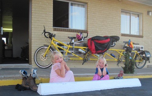 Quite a day. We find we can camp behind the truck stop. Bill sets up camp. Amarins plays cards with the girls in the cafe. Before it gets dark we are all in the tent. It is going to be a cold night tonight, we dress warm and snuggle up deep in our sleeping bags. Bill reads a part of Undaunted Courage before we call it a day.