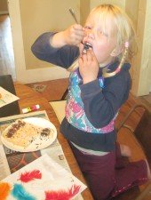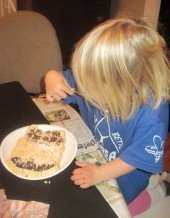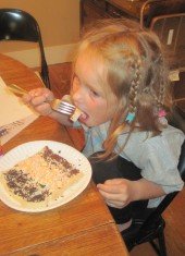 We have a simple cereal breakfast. It is so luxurious in the camper. We have a table to sit at, the girls play on the bunk bed, a pull out bed provides a great card table. Lots of space to enjoy while staying out of the rain.
