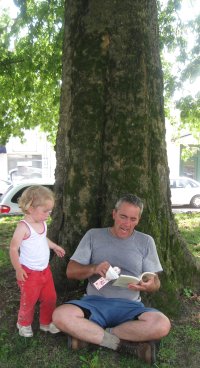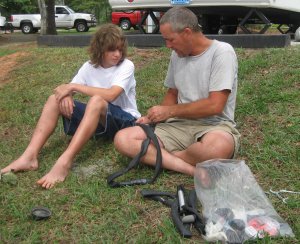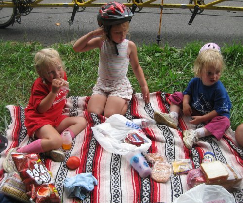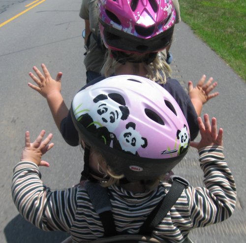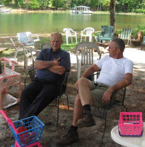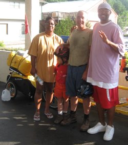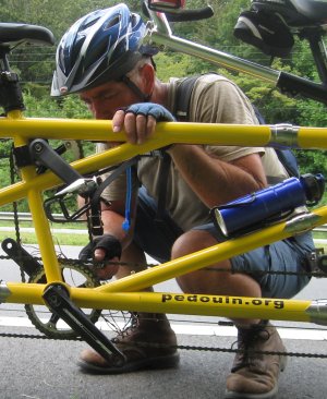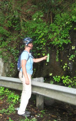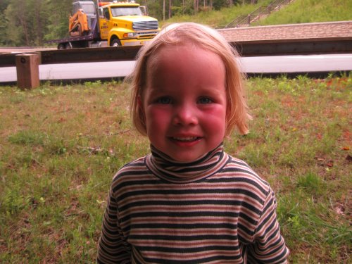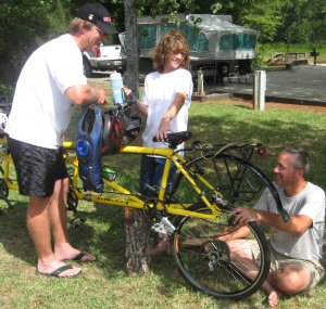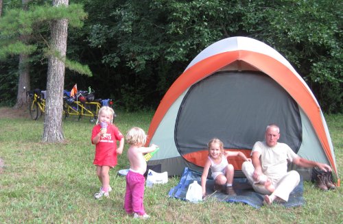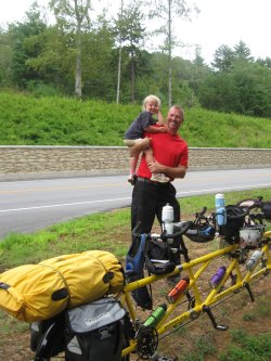 Jasmine has climbed on top of Wilt. He stopped by on his way back into South Carolina. He saw us climbing up the mountain earlier and was curious for our story.