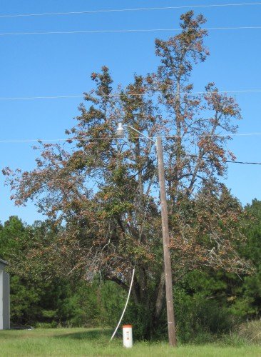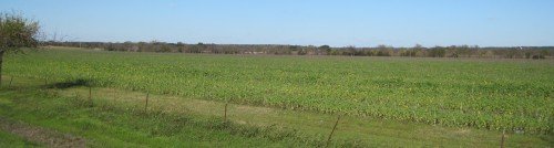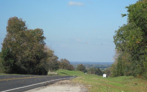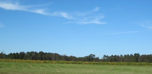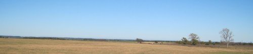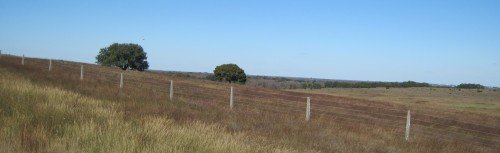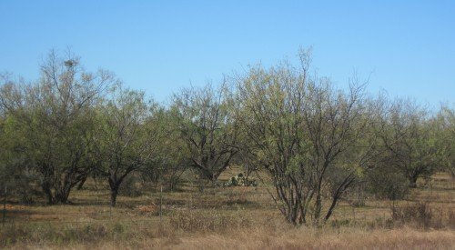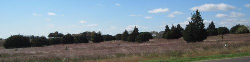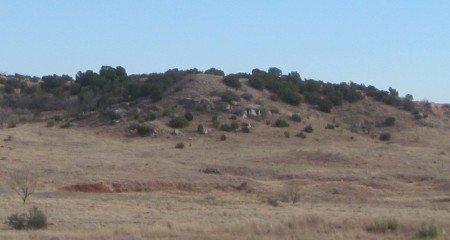 We are in the rolling hills. There are not many trees. The ones we see are short, perhaps one to two stories tall.