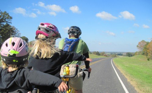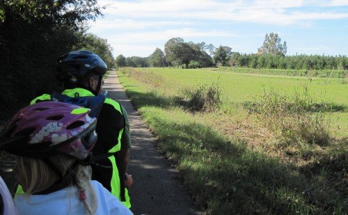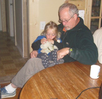 The train in the distance has finally caught up with us. The girls wave and the conductor blew his horn in return.