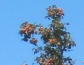 The persimmon tree is full of fruit. The persimmon is an old timy fruit.