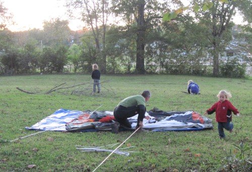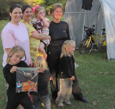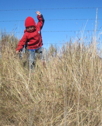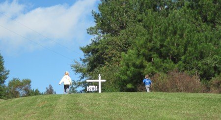 Cheyenne and Jasmine run and cartwheel up and down the hill at our picnic spot.