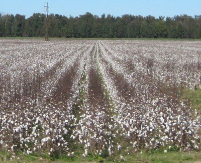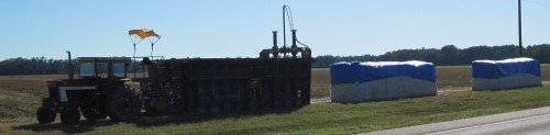 Bales of cotton. The tractor gives a nice impression of the size of the bales.