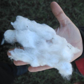 Cheyenne holds a fresh picked piece of cotton. The girls now know where the material for their clothing comes from.