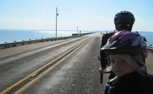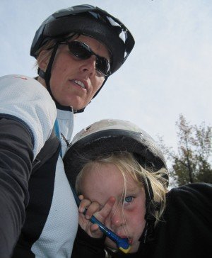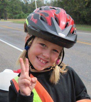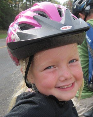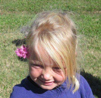 Robin is tickled with the little critter on the handle bar. She wants to touch it, but each time she gets close it moves just enough to scare her away. She does a little giggly dance and comes right back, until the critter finally flies away.