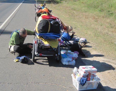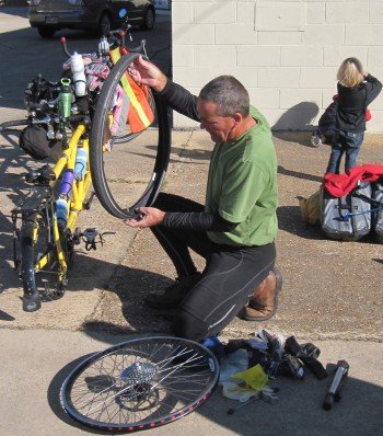 We finally have new Armadillo tires. The side walls of these tires are much stronger then the ones we've been riding with for the past 1,000 miles. This will reduce the friction on the road. Yes!